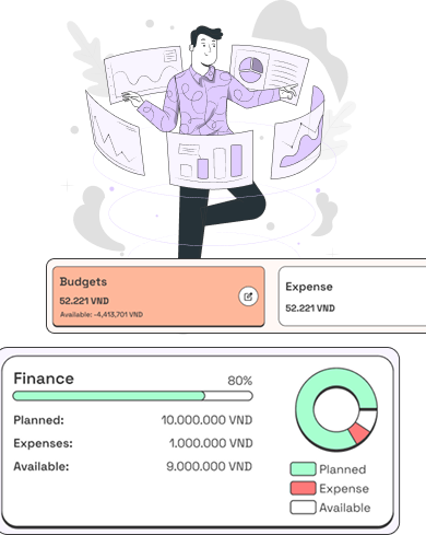 Mô-đun Ngân sách & Chi phí của PlanZ giúp đơn giản hóa quản lý tài chính, đảm bảo ngân sách luôn được kiểm soát chặt chẽ.